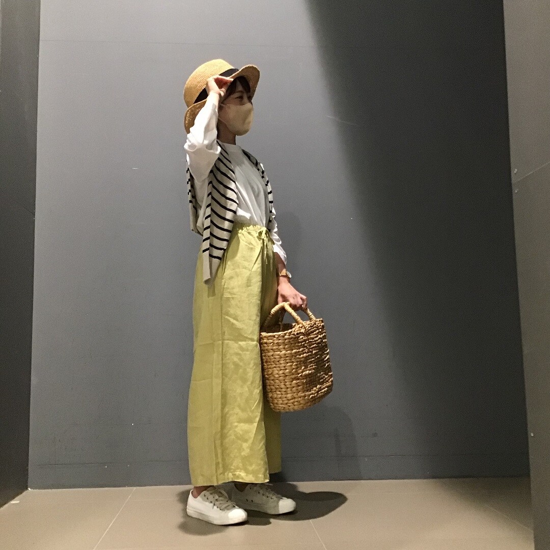 夏らしく、明るい色と涼しい素材でコーデしてみました。