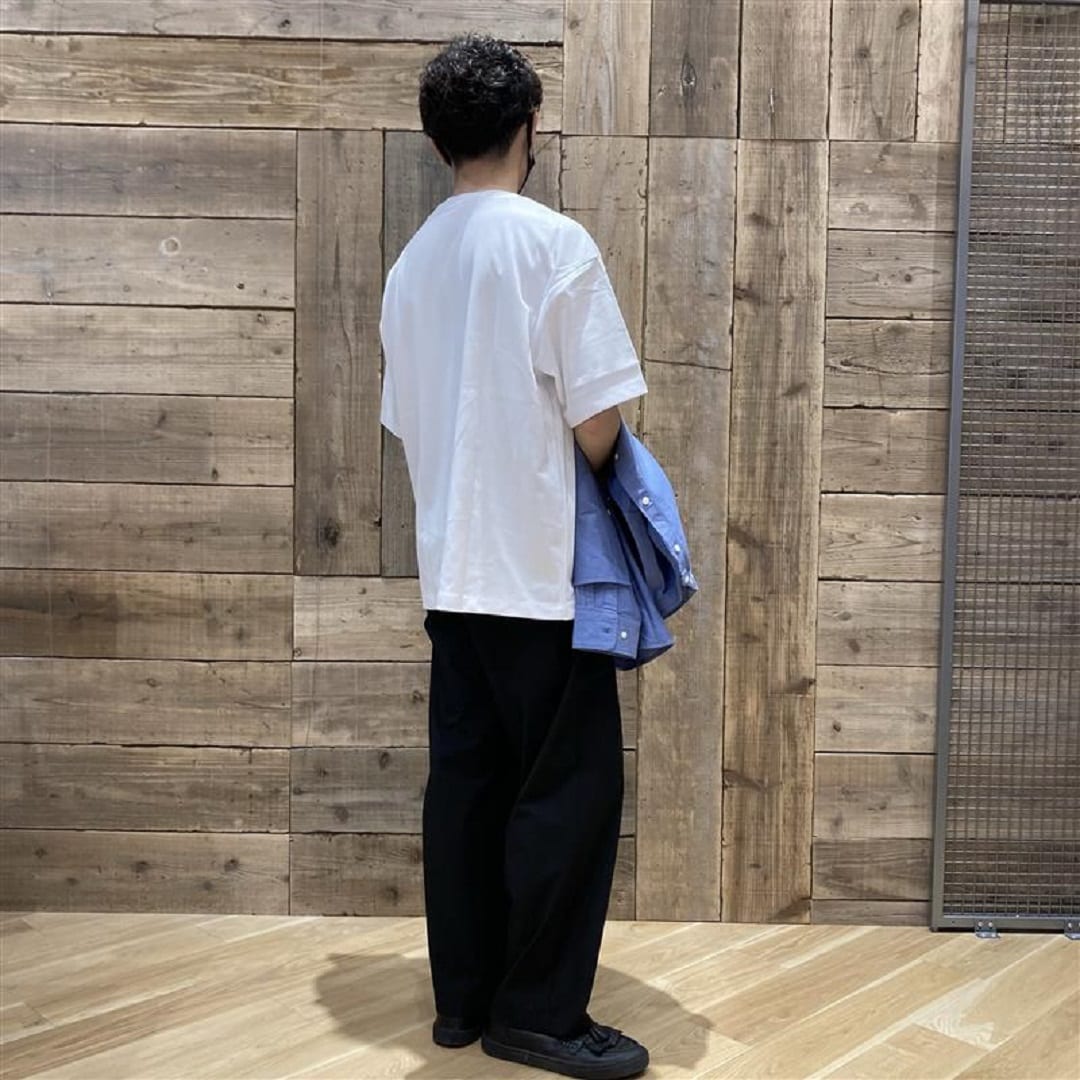 夏らしい青のシャツと白のTシャツを合わせ爽やかな印象のコーディネートを目指しました。