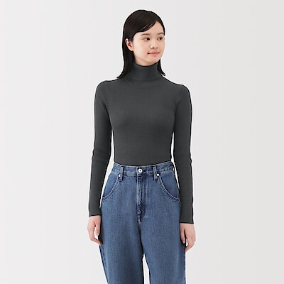 商品名:洗えるウールハイゲージリブタートルネックセーター