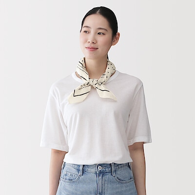 ➤無印良品の涼感Tシャツで、汗ばむ季節もおしゃれしてお出かけしよう。