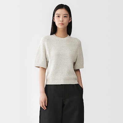 婦人 コットン混ブークレ五分袖セーター 婦人M・ライトグレー