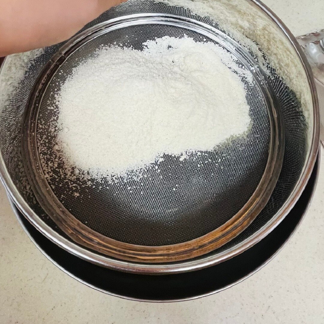 ①粉糖とアーモンドプードルを混ぜてふるう。