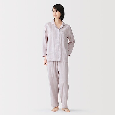 ○脇に縫い目のない 二重ガーゼ長袖パジャマ