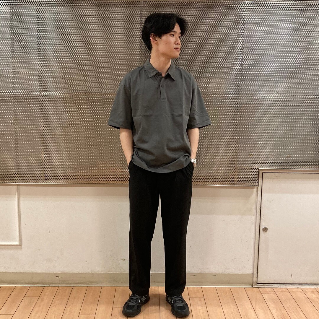 表面は綿100%で編み立て、裏面には接触冷感性のある機能素材を使用した二層構造のポロシャツです。ボックスシルエットに仕立てているため体型カバー力があり、衿はスキッパーとしても着用可能です。