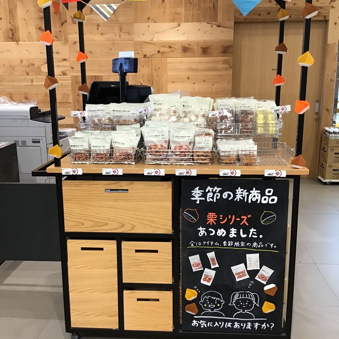 栗シリーズのお菓子はレジ前にありますので、ご来店の際には【季節限定】が目印ですよ。