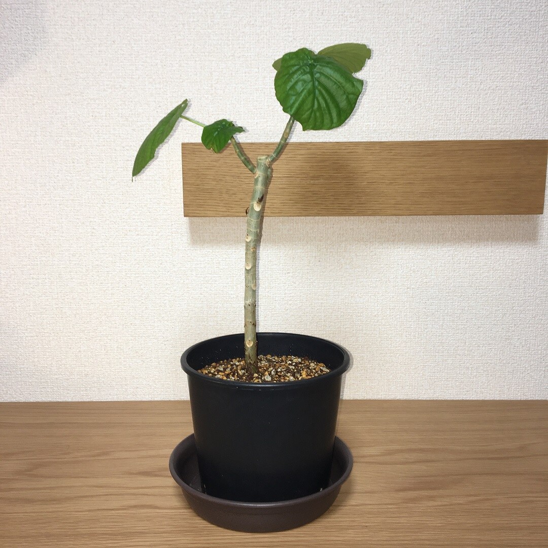 以前無印良品で買った3号サイズのウンベラータが大きく成長し、昨年秋に剪定した茎から新芽が出てご覧の様子になりました。