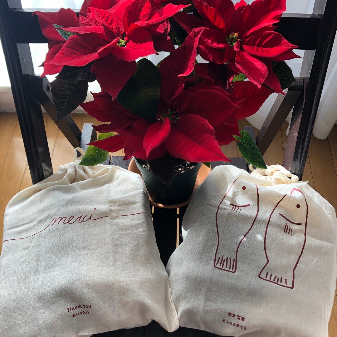 一つはフランス語で”ありがとう”の意味のMerciと書かれた巾着。