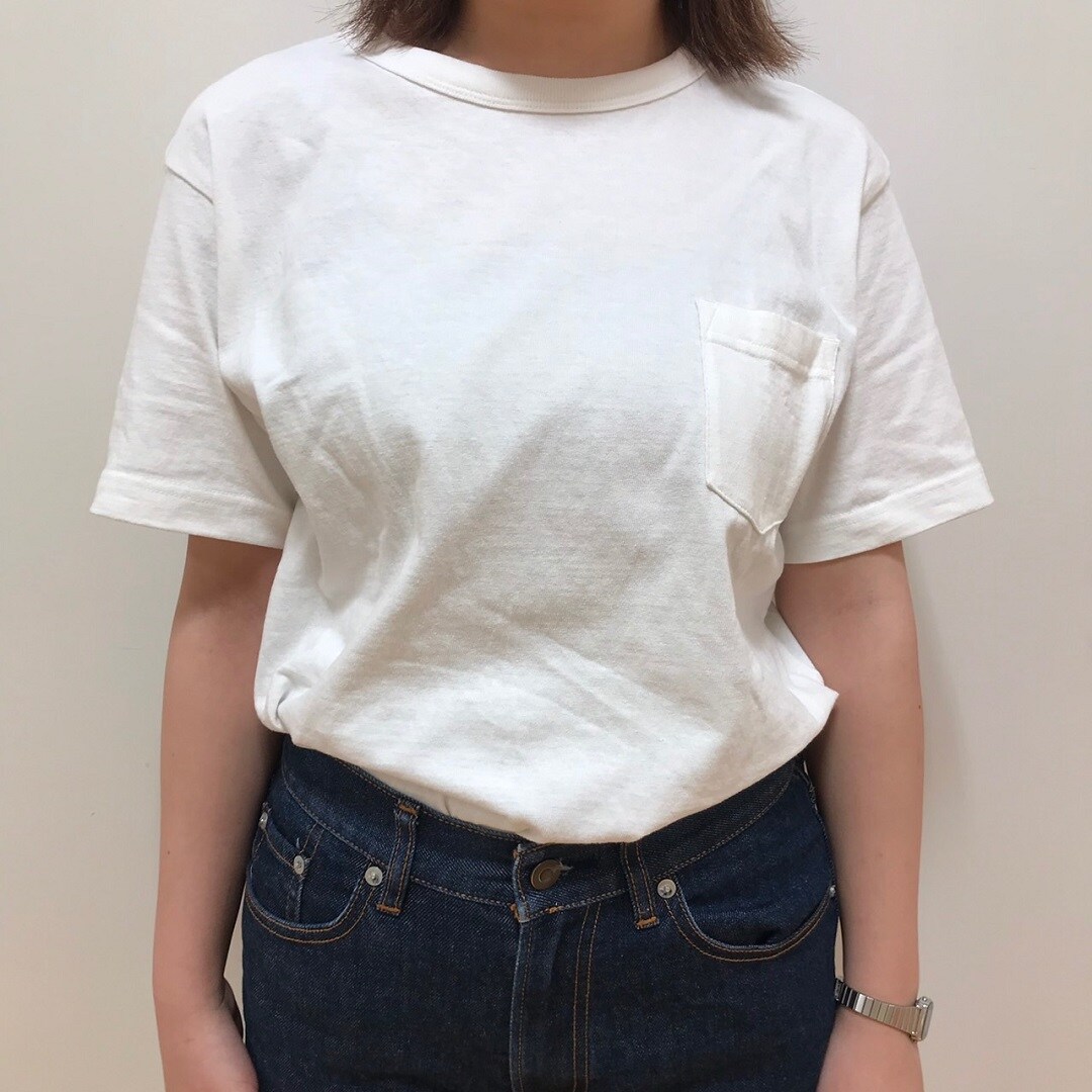 太番手 天竺編みポケット付き半袖Tシャツ 白