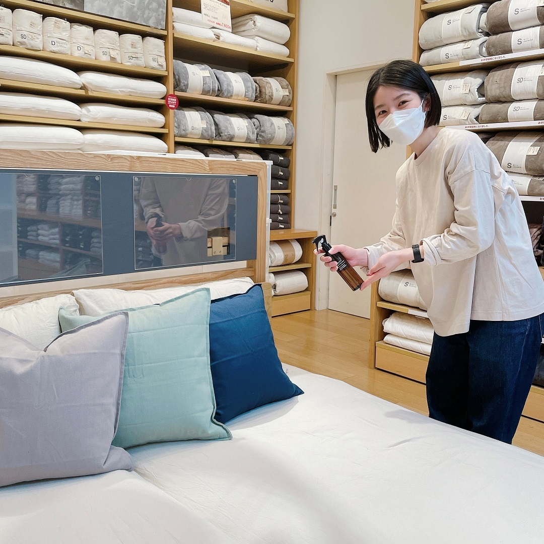 寝る前に軽くベッド周りにシュシュッとすれば、リネン類がさっぱりするのに加えて、