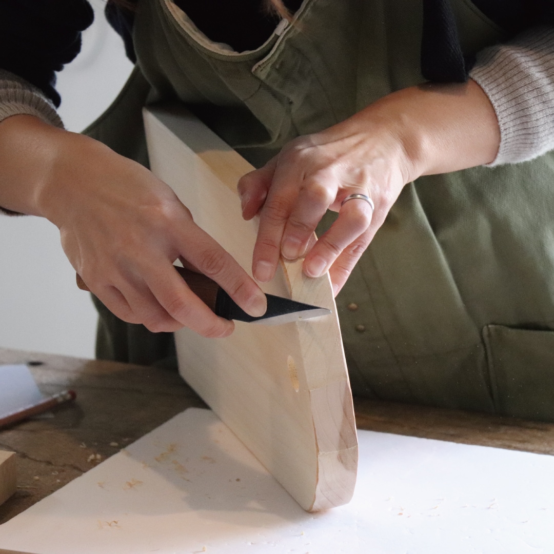 ワークショップでは、おおまかにカットされた板の状態から小刀やかんな、やすり等の道具を使って整えていくのですが、やりだすと集中してあっという間に時間が過ぎてしまいます。