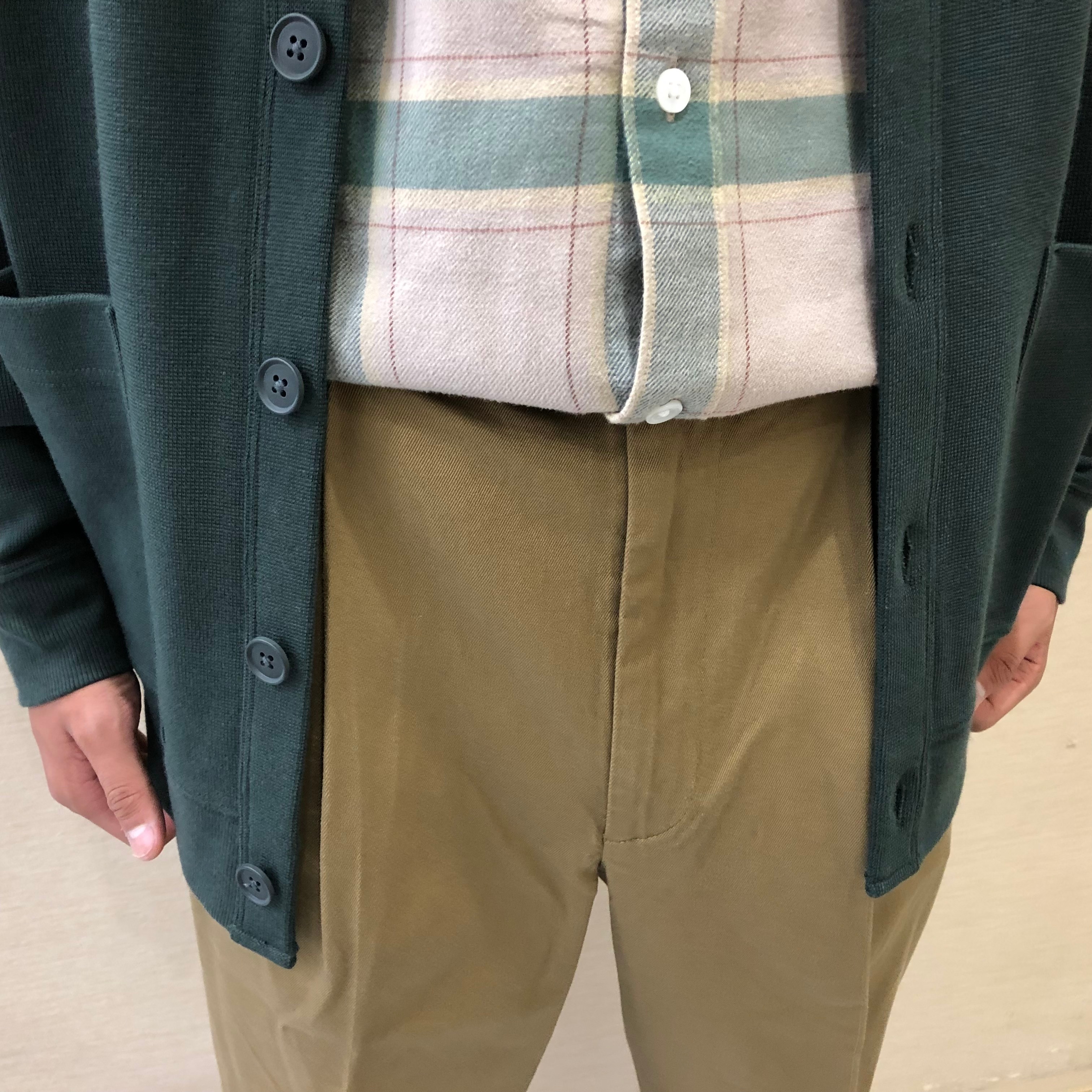 暖かな着心地となめらかな肌触りにするために起毛を施した『両面起毛フランネル長袖シャツ』を着用したコーデです。
