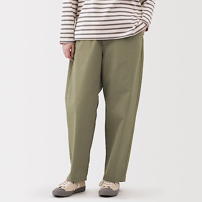 婦人 洗いざらし コットンイージーテーパードパンツ 婦人XL・カーキグリーン
