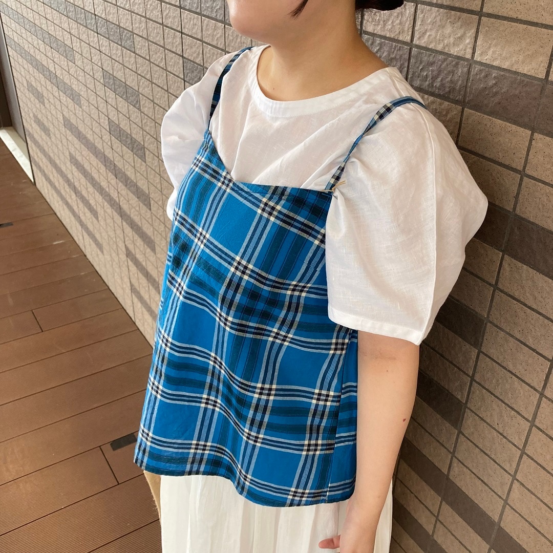 キャミソールブラウスをヘンプのブラウスと合わせて可愛らしくしてみました。