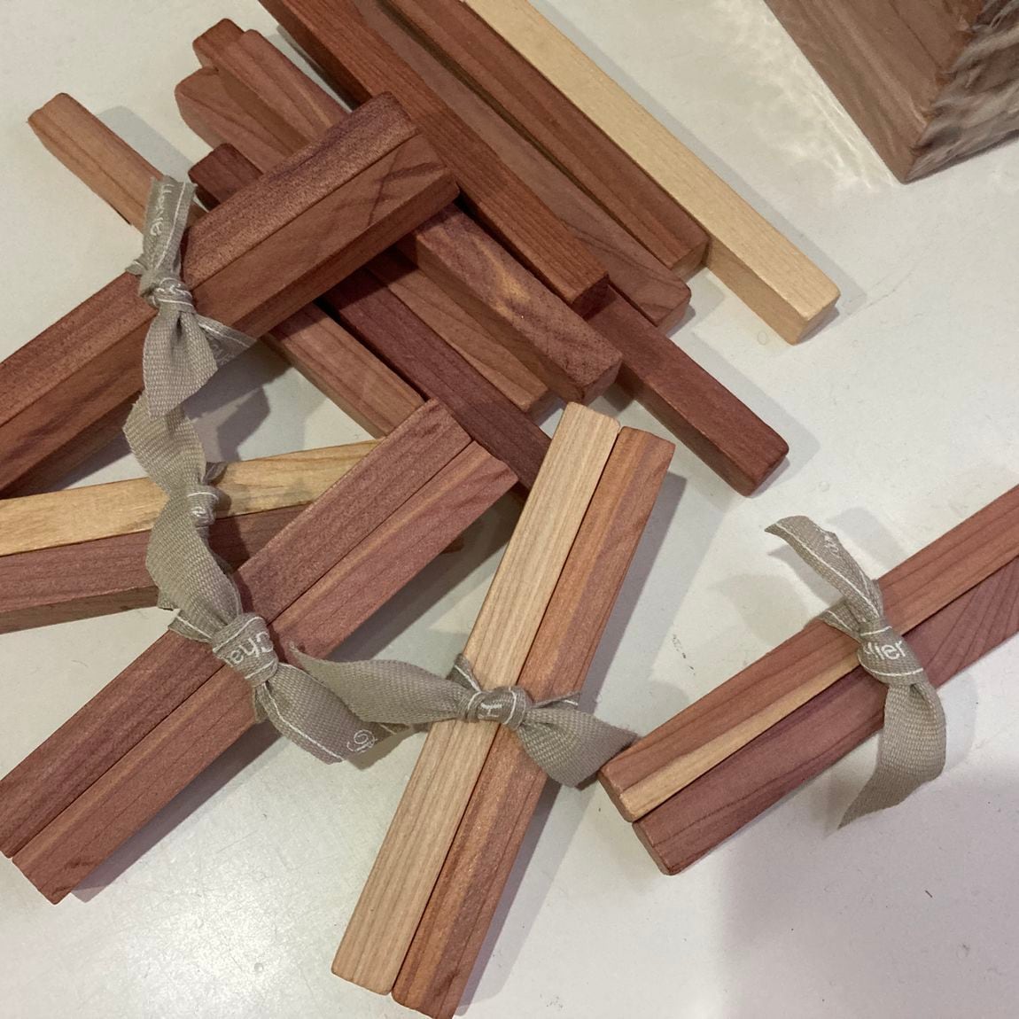 こちらは、防虫・消臭・除湿効果があると言われているレッドシダーを使用したブロックです。