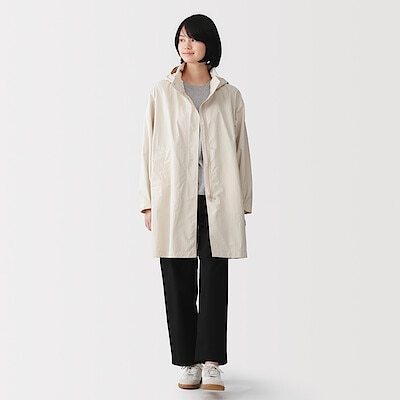 婦人 撥水UVカット フードがしまえるロングコート