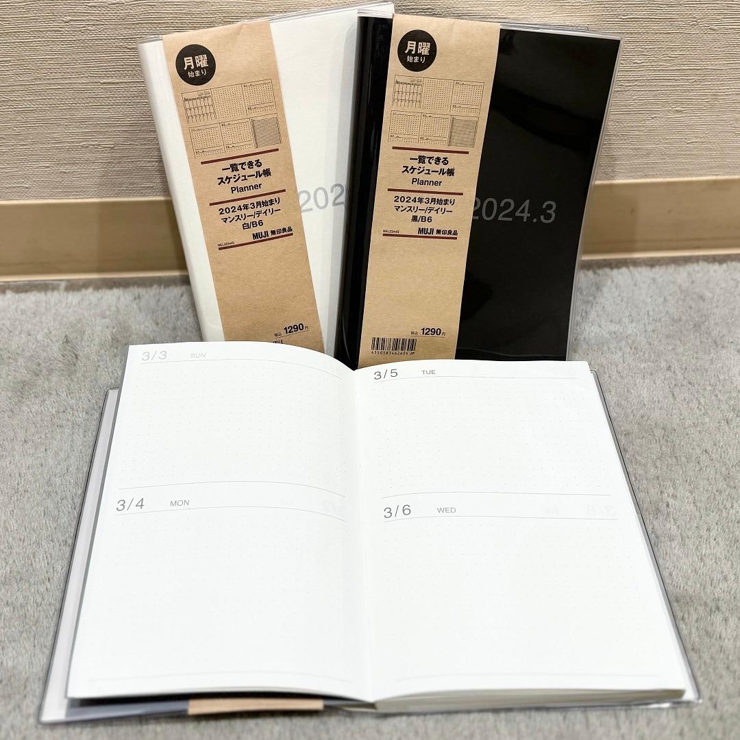 12月始まりでもご好評頂いていた『B5ハーフサイズ』や『一覧できるスケジュール帳』もご用意しています。
