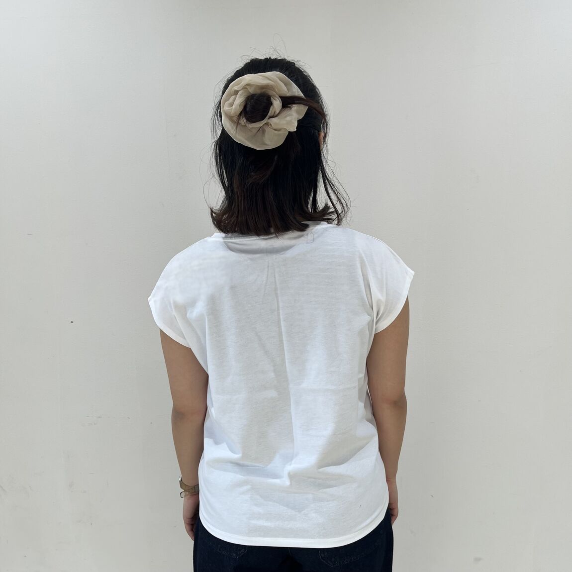 ほかのTシャツより首元のリブが細く、爽やかに着こなせる1枚です。