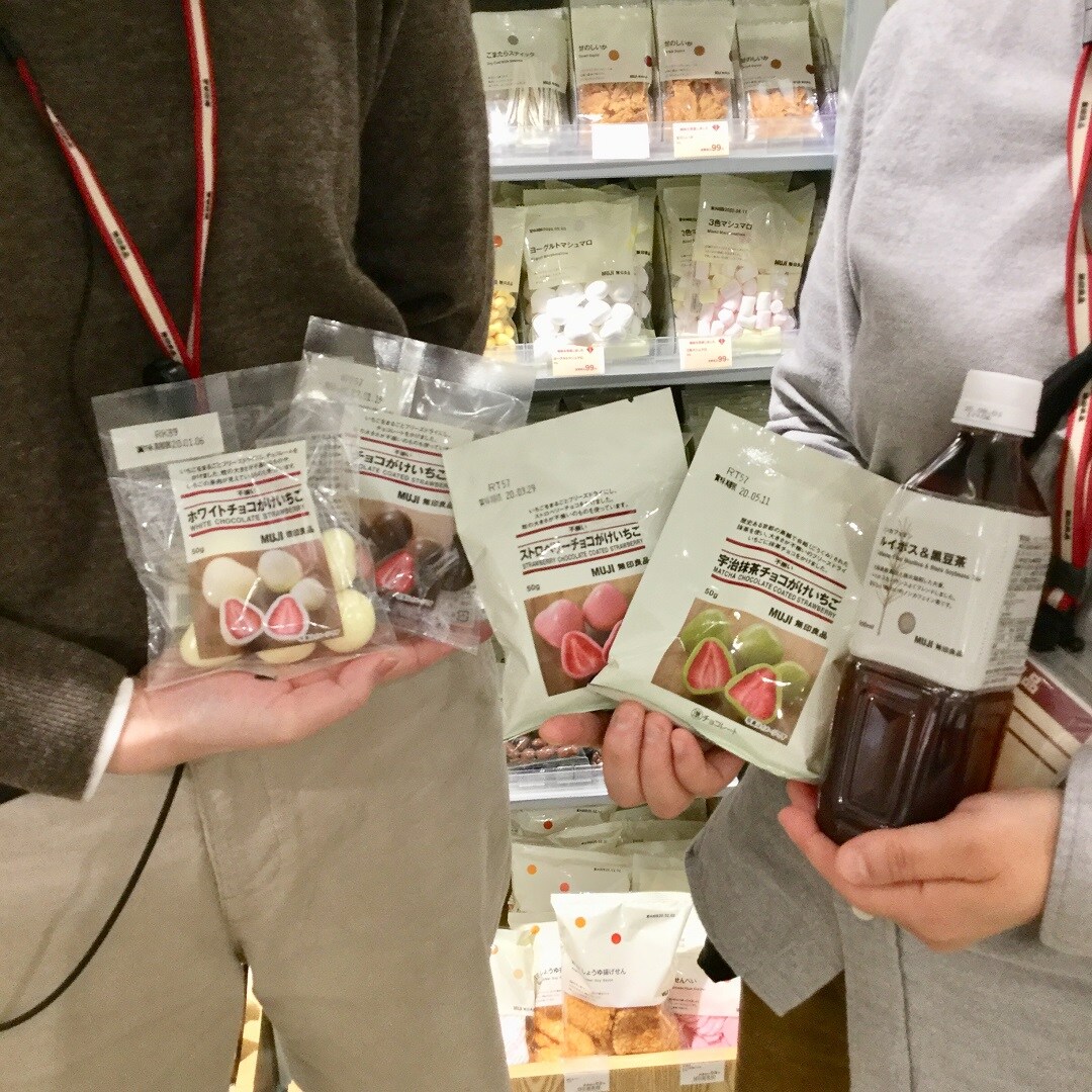 無印良品で人気の不揃いチョコがけいちごシリーズが試食に登場です。