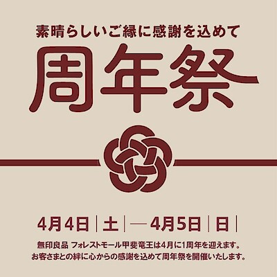 【ラザウォーク甲斐双葉】フォレストモール甲斐竜王周年祭のお知らせ
