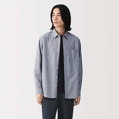 紳士 洗いざらしブロード長袖シャツ 紳士XL・スモーキーブルー