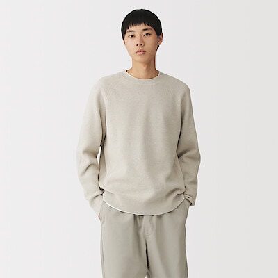 紳士 洗えるワッフル編みクルーネックセーター 紳士XL・アイボリー