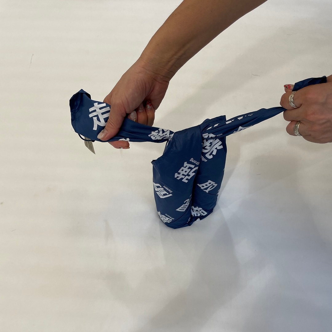 再生ポリエステル入りたためる風呂敷を使った簡単な包み方をご紹介したいと思います。