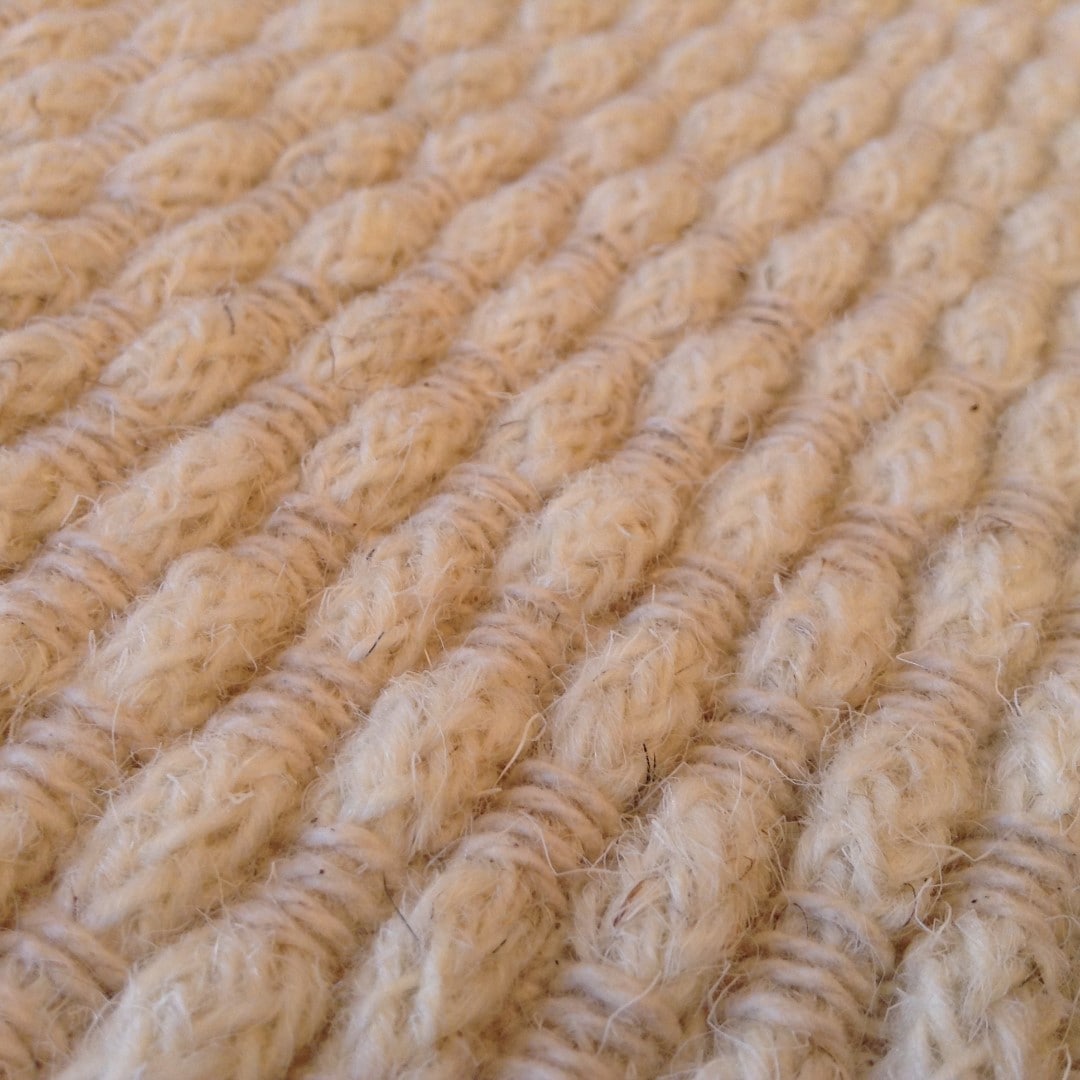 さらに、ジュートと綿を使用し、ヘリンボーン柄に織りあげました『ジュートコットンマット/生成 50×80cm』。異なる自然素材のコラボが豊かな表情を生み出しています。