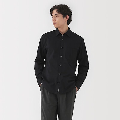 紳士 洗いざらしブロード長袖シャツ 紳士L・黒