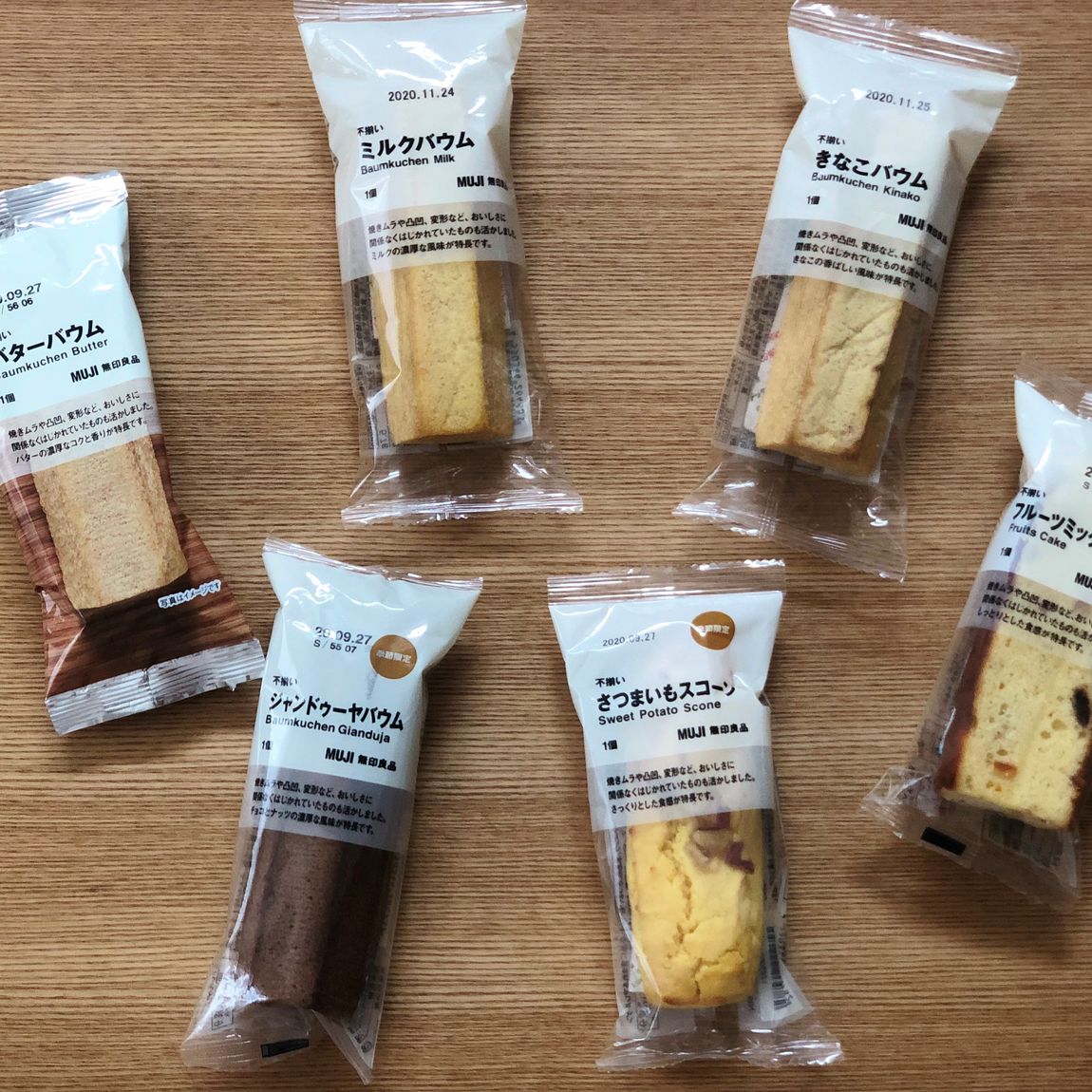 まずは『バターバウム』、『ミルクバウム』、『きなこバウム』、『フルーツミックスケーキ』の4種類を実食してみます。