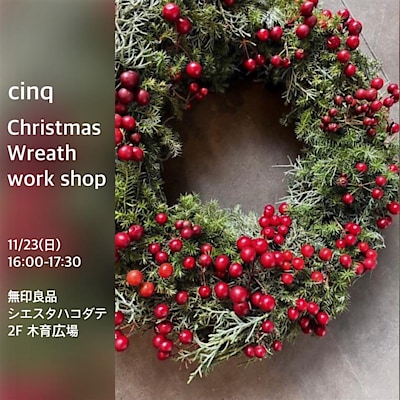 【シエスタハコダテ】赤い実と針葉樹のクリスマスリースワークショップ