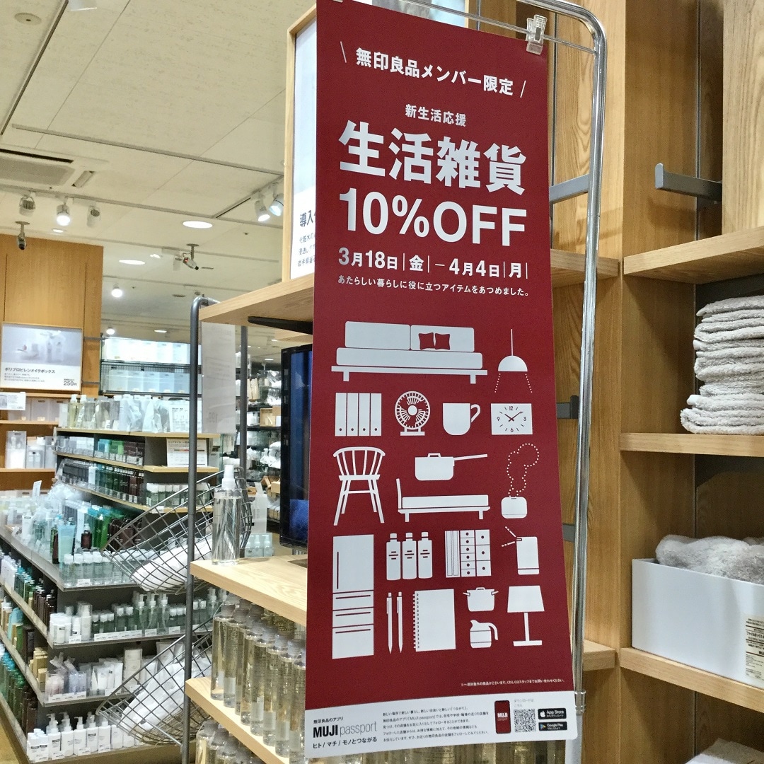 3月18日(金)から始まりました、無印良品メンバー様限定で生活雑貨がただ今10%オフでご利用いただけます。