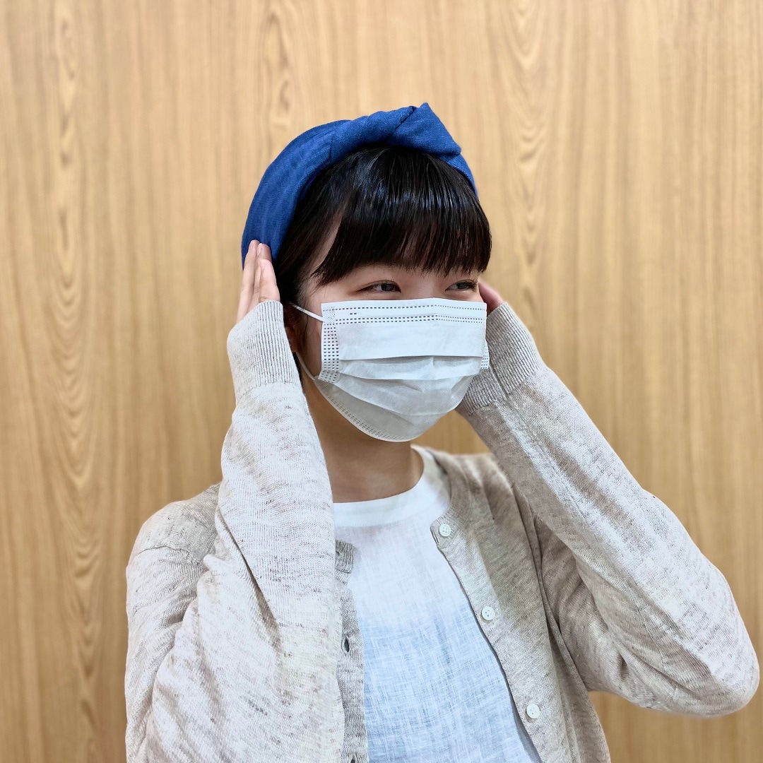 このように頭に巻いてヘアバンドとして使って頂けます。