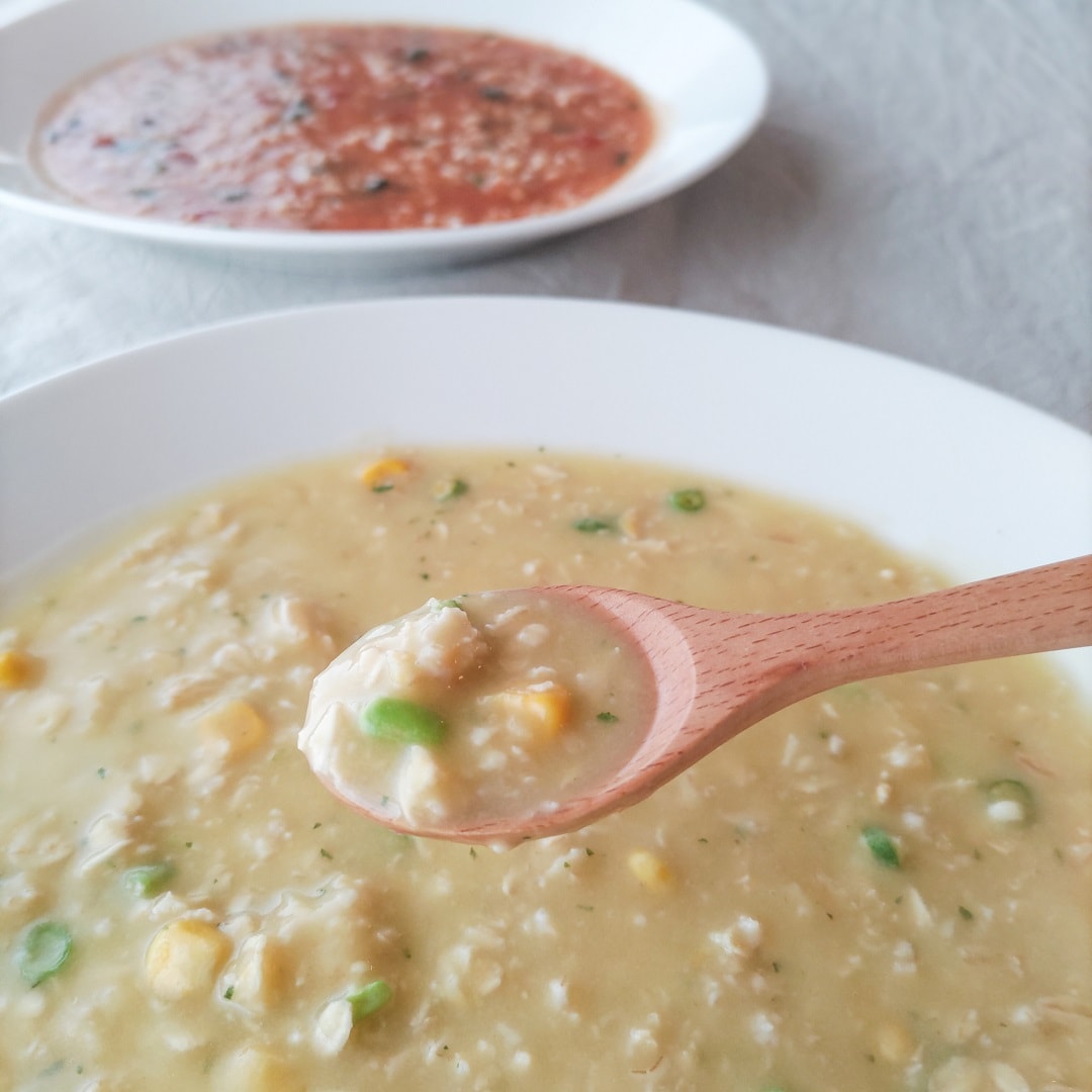 お湯を200mlそそいでよくかき混ぜるととろみが出てきます、約3分でお召し上がりいただけます。