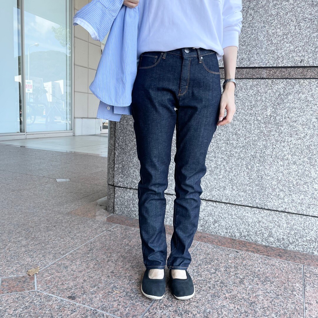 スリムストレートよりも足に沿い、股上が少し深めになっております。