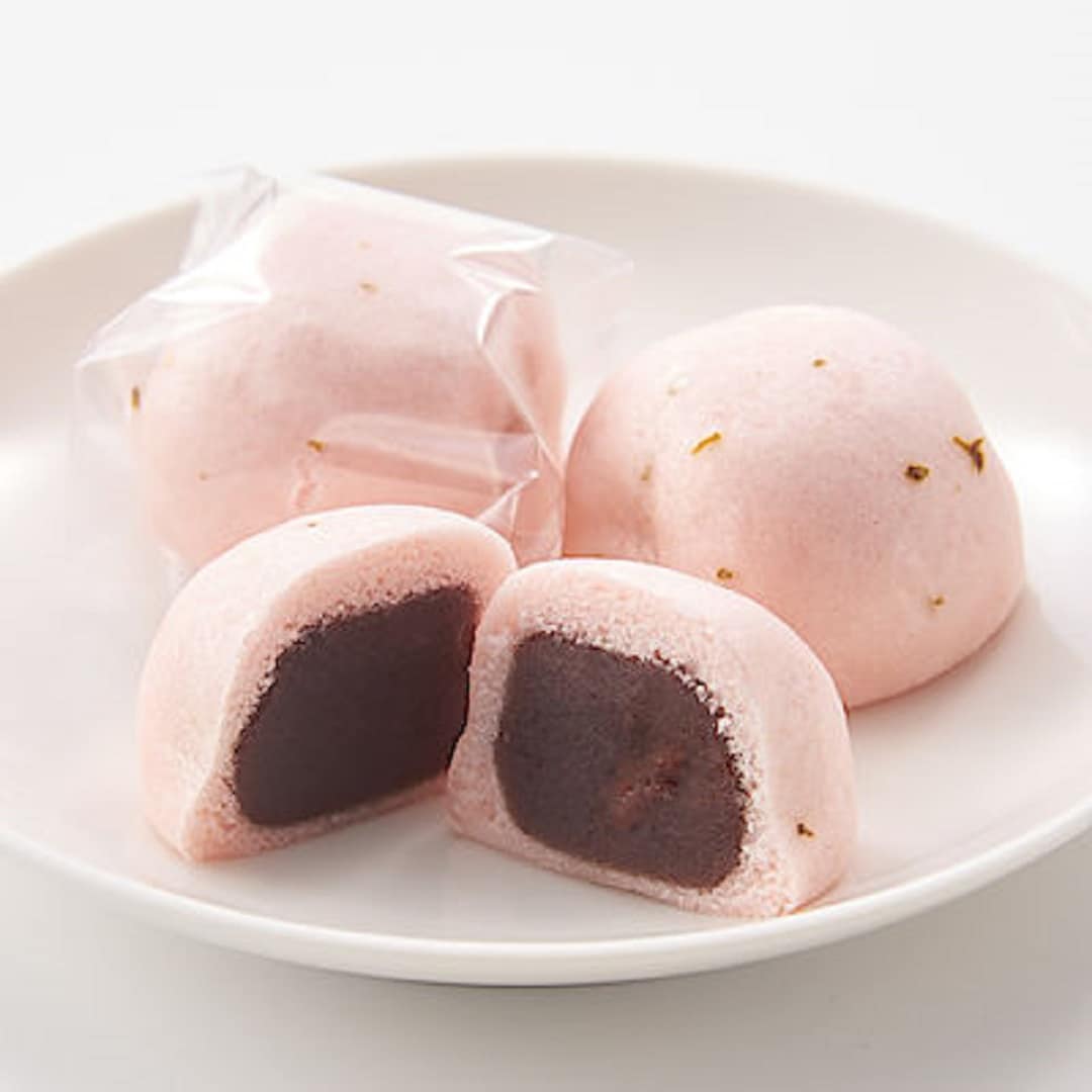 ・桜の葉を練り込んだ生地で甘さ控えめのこしあんを包み込みました。