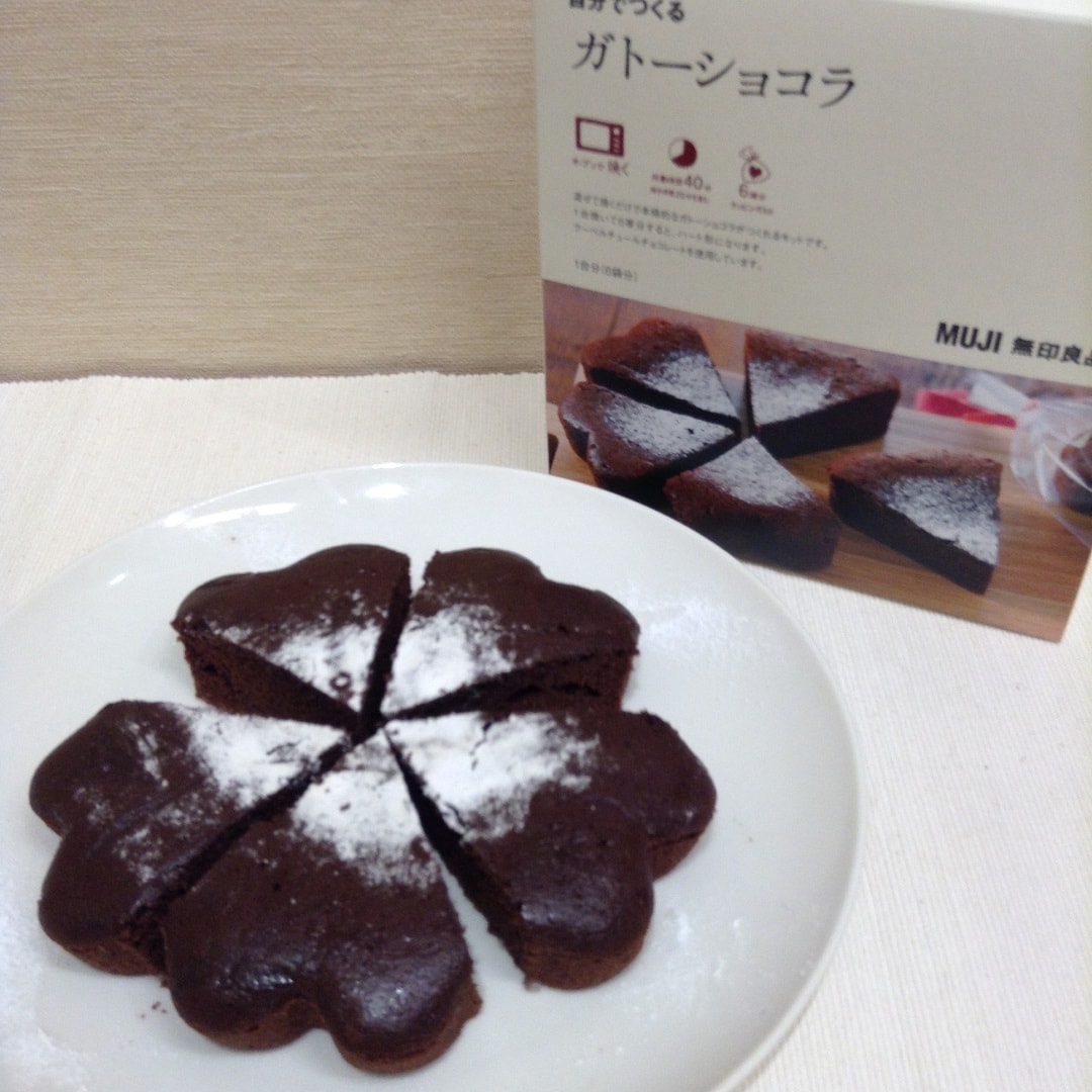 これぞバレンタインなガトーショコラです。 混ぜて焼くだけですが本格的な味がします。そのままだと花型、カットするとハート型に変化します。カットすると小分けにして配ることもできるので便利ですよね。