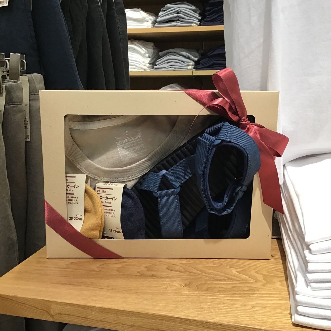 普段使いできる靴下や、サンダルも一緒にラッピングするとボリューム感もでて良いですね。