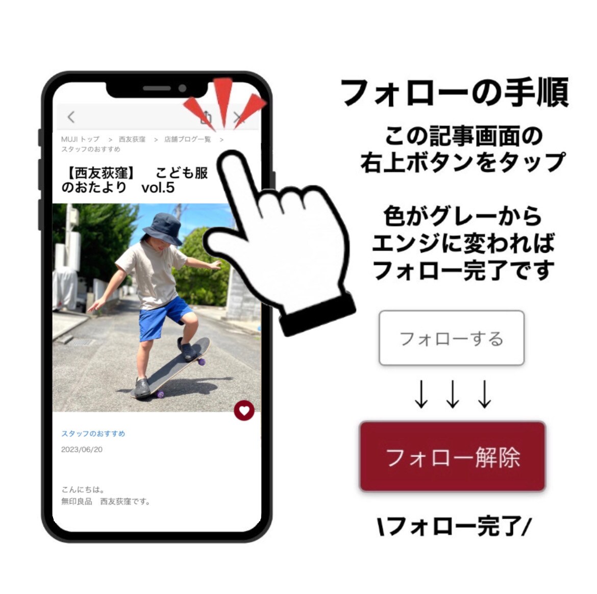 無印良品 西友荻窪」をフォローいただきますと、MUJI passport内のfrom MUJI より、西友荻窪からのお知らせをご覧いただけます。