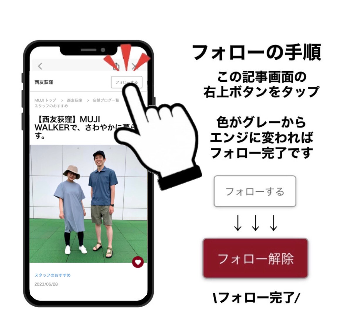 無印良品 西友荻窪」をフォローいただきますと、MUJI passport内のfrom MUJI より、西友荻窪からのお知らせをご覧いただけます。