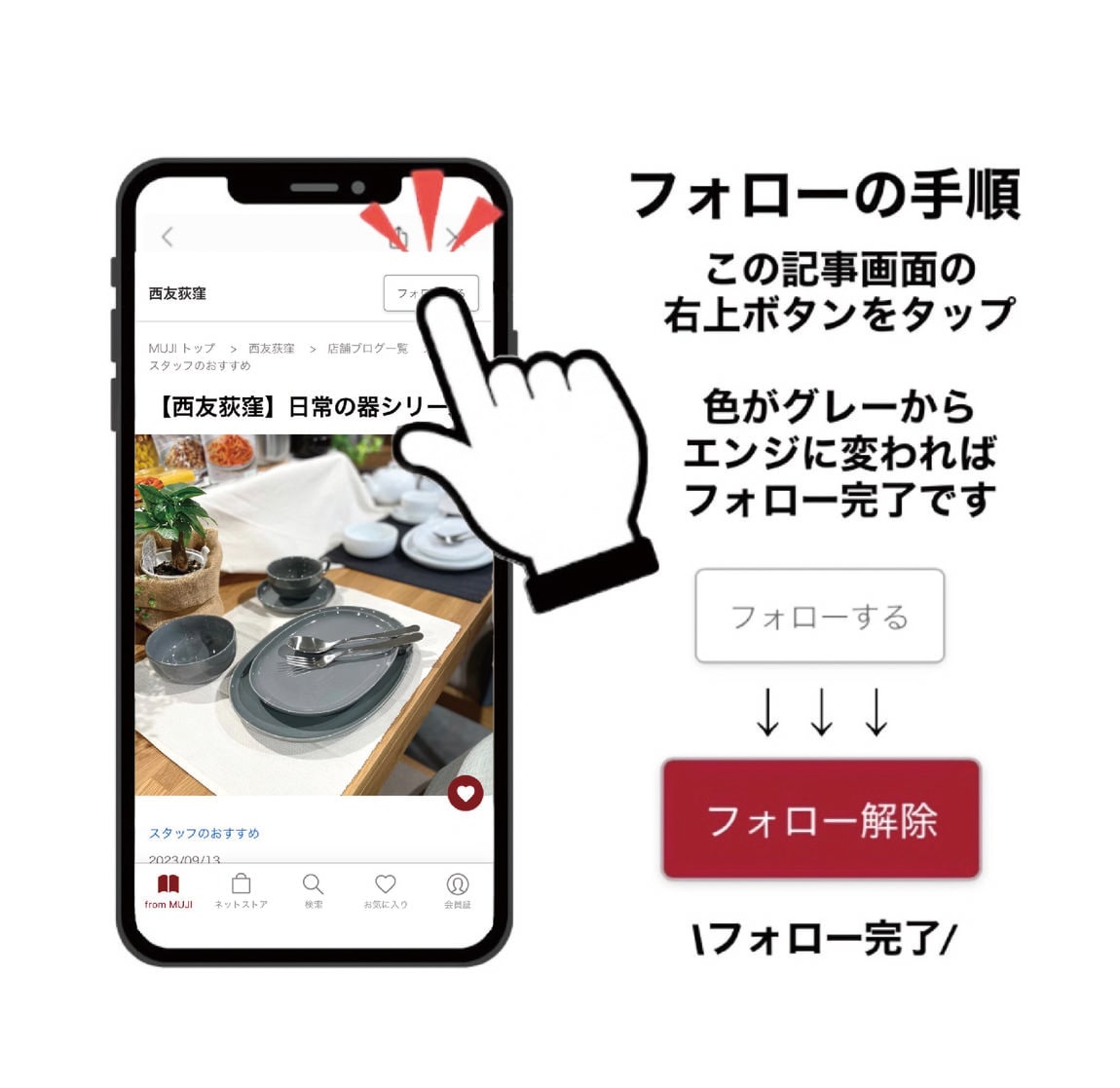 無印良品 西友荻窪」をフォローいただきますと、MUJI passport内のfrom MUJI より、西友荻窪からのお知らせをご覧いただけます。