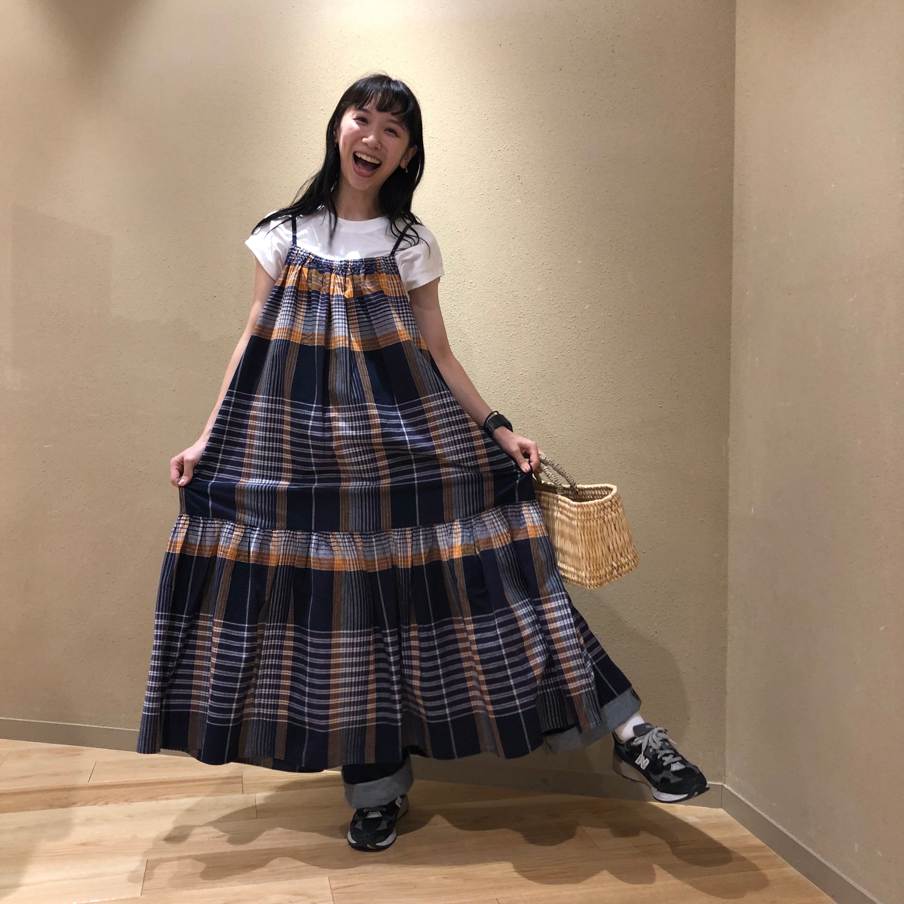 2つ目はタンクトップを合わせて爽やかでリゾート感満載のコーディネートにしました。