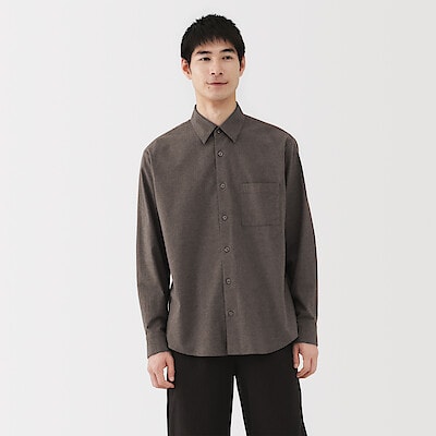 紳士 コットンウールフランネル長袖シャツ 紳士S・ブラウン