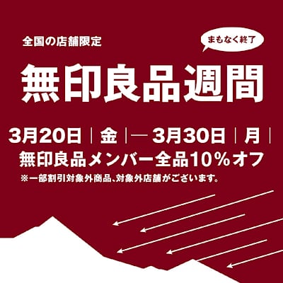 【ザ・モール郡山】無印良品週間まもなく終了です。
