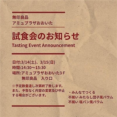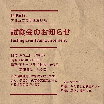 【アミュプラザおおいた】試食会のお知らせ