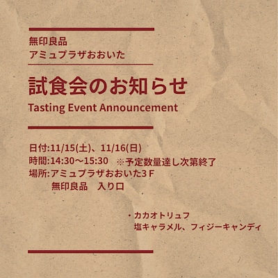 【アミュプラザおおいた】試食のお知らせ 2025/11/12
