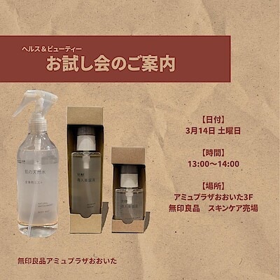 【アミュプラザおおいた】スキンケアお試し会のお知らせ 2026/03/12