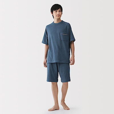 紳士 着るタオル 両面パイル 半袖ルームウェアセット 紳士M・スモーキーブルー