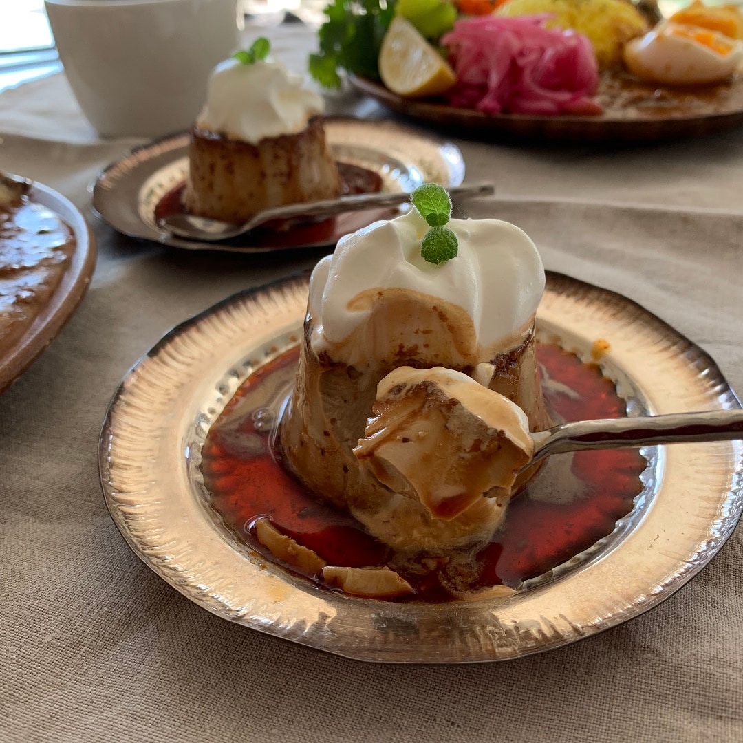 マサラチャイの香りがしっかりとするプリン、カレーとの組み合わせは思っていた通りぴったりで、大満足のカレーの日でした。