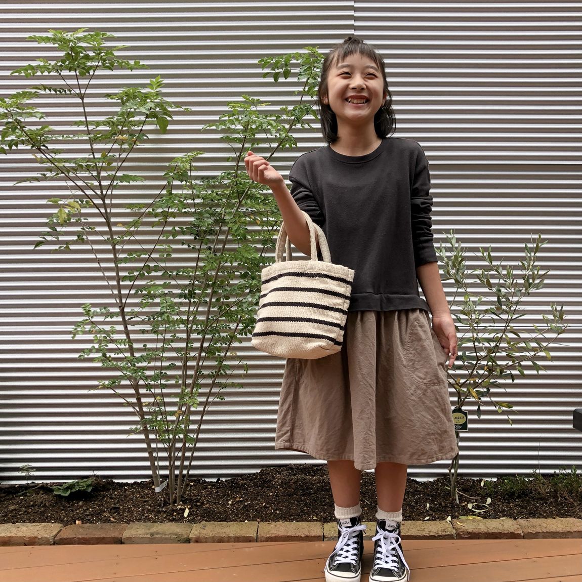 成長とともにサイズが小さめになっても、スカート短めにタイツとブーツなどを合わせたり、ながくコーデを楽しめます。