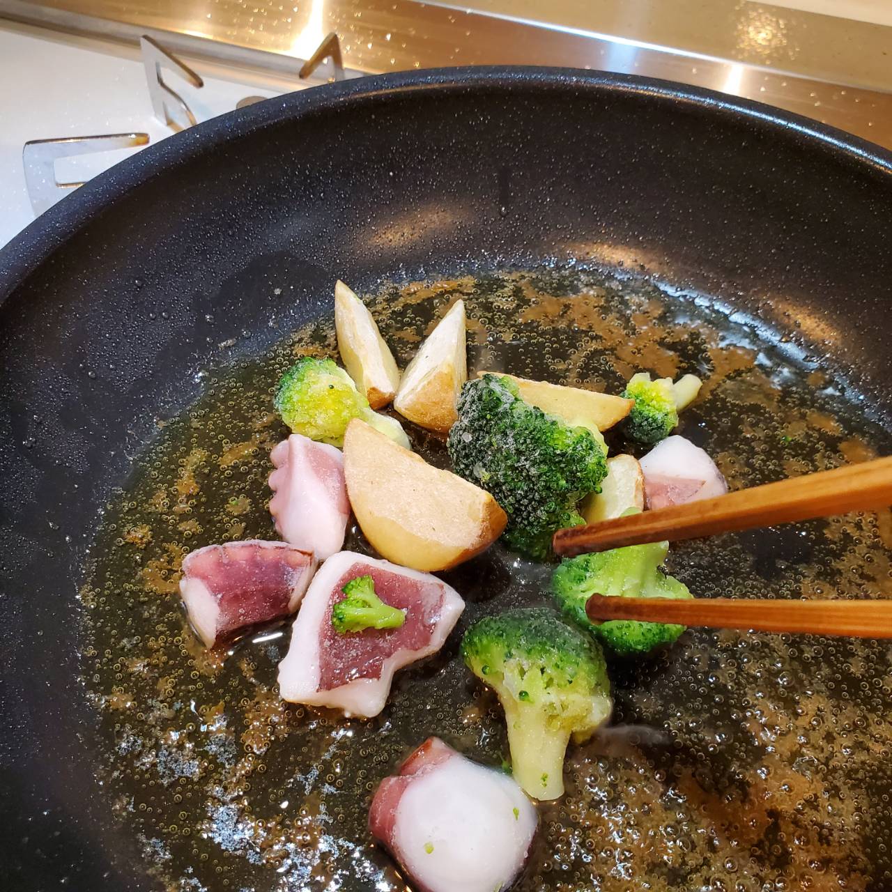 『フライパンでつくるミールキット たことブロッコリーのアヒージョ』